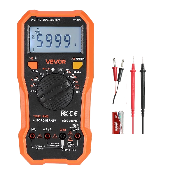 VEVOR Digital Multimeter,6000-Count TRMS DC/AC Voltmeter Current Tester,Professional NCV Multimeter for Current Voltage Resistance Capacitance Duty-Cycle Tempetature Diodes Continuity Live Wire Test