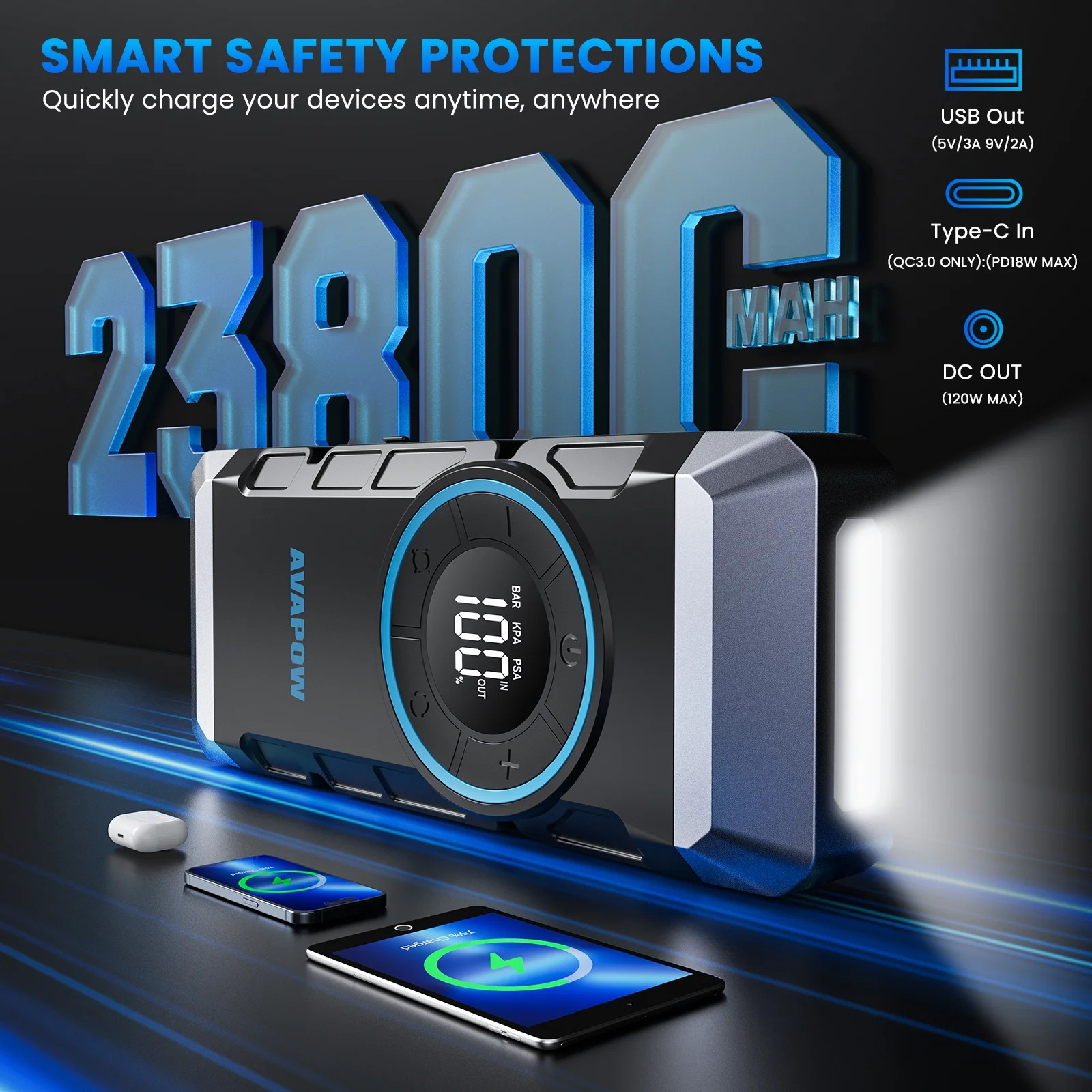 AVAPOW 3000A Jump Starter with Air Compressor, 12V Portable Battery Booster Pack (for All Gas or up to 8.0L Diesel) with 150PSI Digital Tire Inflator