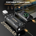 - Portable Powerbank: Equipped with a 27,800mAh battery and dual USB outputs (QC 3.0 & 5V/2.4A) for fast charging of electronic devices.