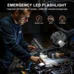 - Powerful Performance: Delivers 4000A peak current for all gas engines and up to 10.0L diesel engines, providing up to 60 jump starts on a single charge.