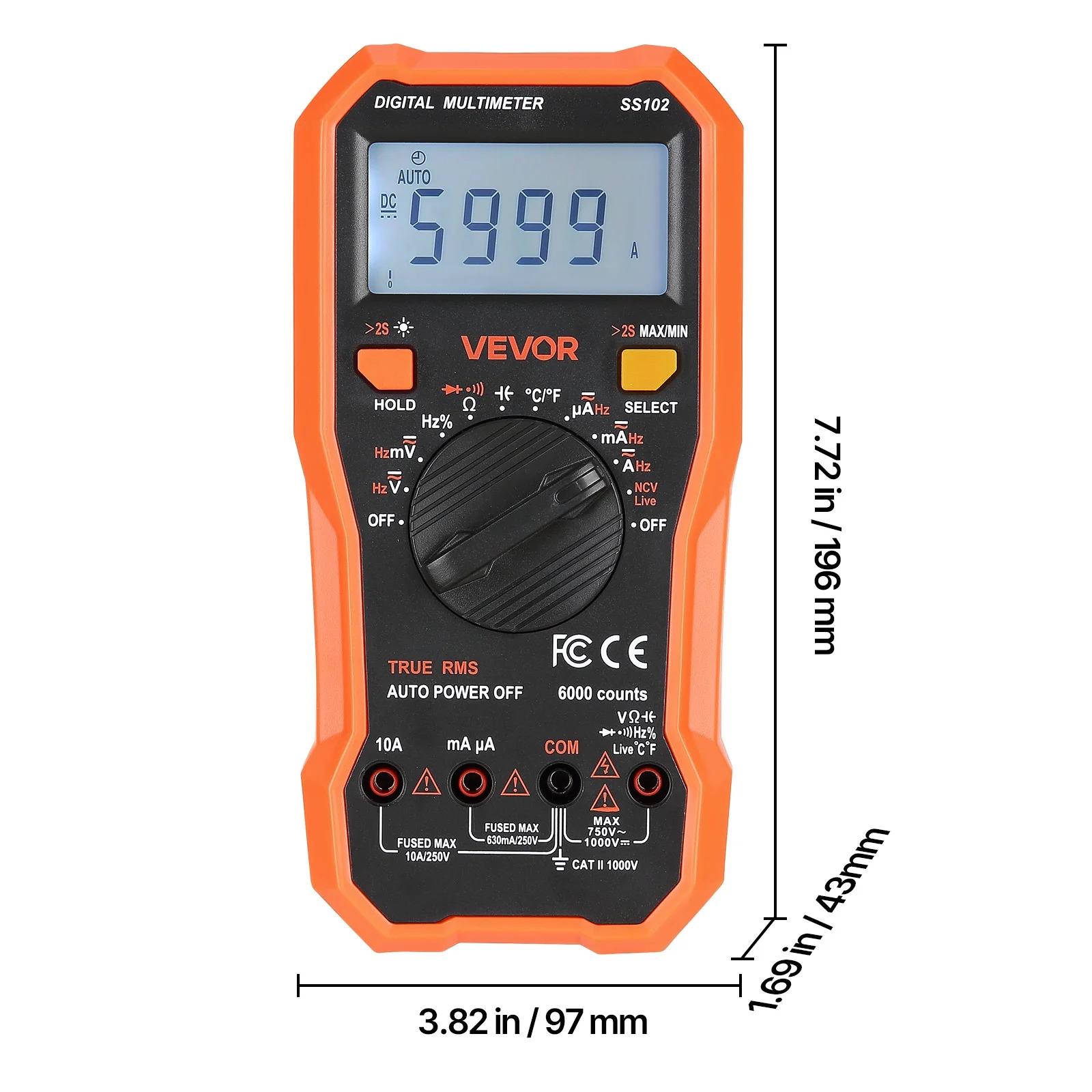 VEVOR Digital Multimeter,6000-Count TRMS DC/AC Voltmeter Current Tester,Professional NCV Multimeter for Current Voltage Resistance Capacitance Duty-Cycle Tempetature Diodes Continuity Live Wire Test