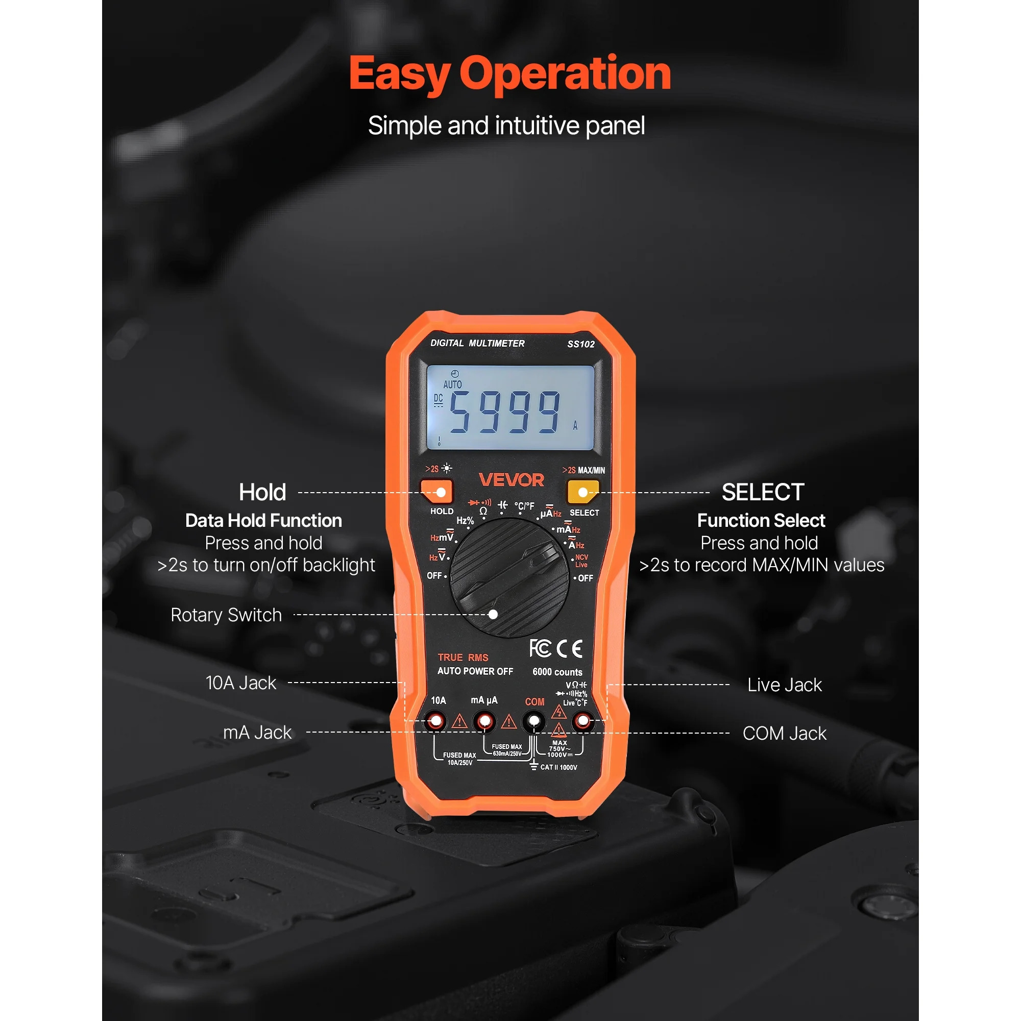 - Robust Safety: Constructed with sturdy plastic, IP20 protection, and complies with CAT II 1000V safety standards for secure operation.